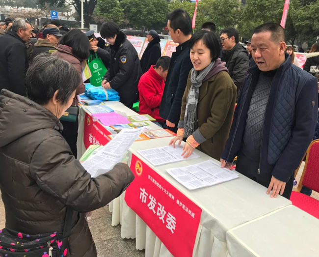 12月4日,按照市委宣传部、依法治市办、市司法局、《关于举办2017年“12·4”国家宪法日集中宣传月暨法治绵阳建设宣传周活动的通知》要求,结合学习贯彻党的十九大精神,市发展改革委在铁牛广场组织举办“12.4”主题法治宣传广场活动,委党组成员、副主任李浩然,政策法规与规划科、市价格和粮食监督检查局派员参加。